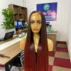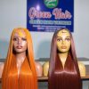 We offer a variety of styles and colors, from straight, curly to trendy ombre hair. The image showcases a fashionable wig model with standout colors, clearly reflecting the sophistication and quality in each strand of hair..
